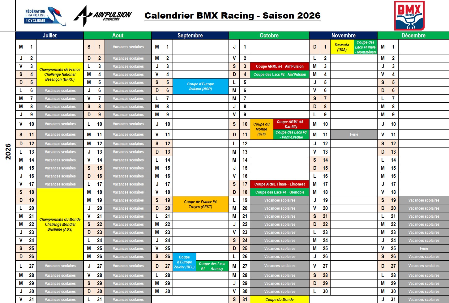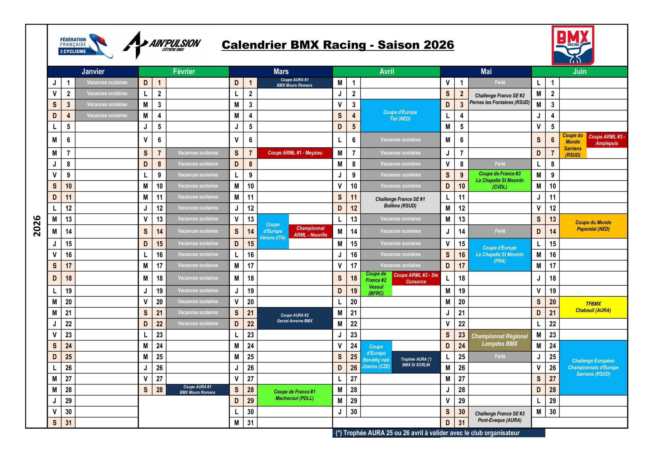 ATTENTION : Pour rappel les 2 manches de la coupe Auvergne-Rhône-Alpes sont obligatoires pour participer aux manches de Challenge France qualificatives pour les Championnats de France !!!!